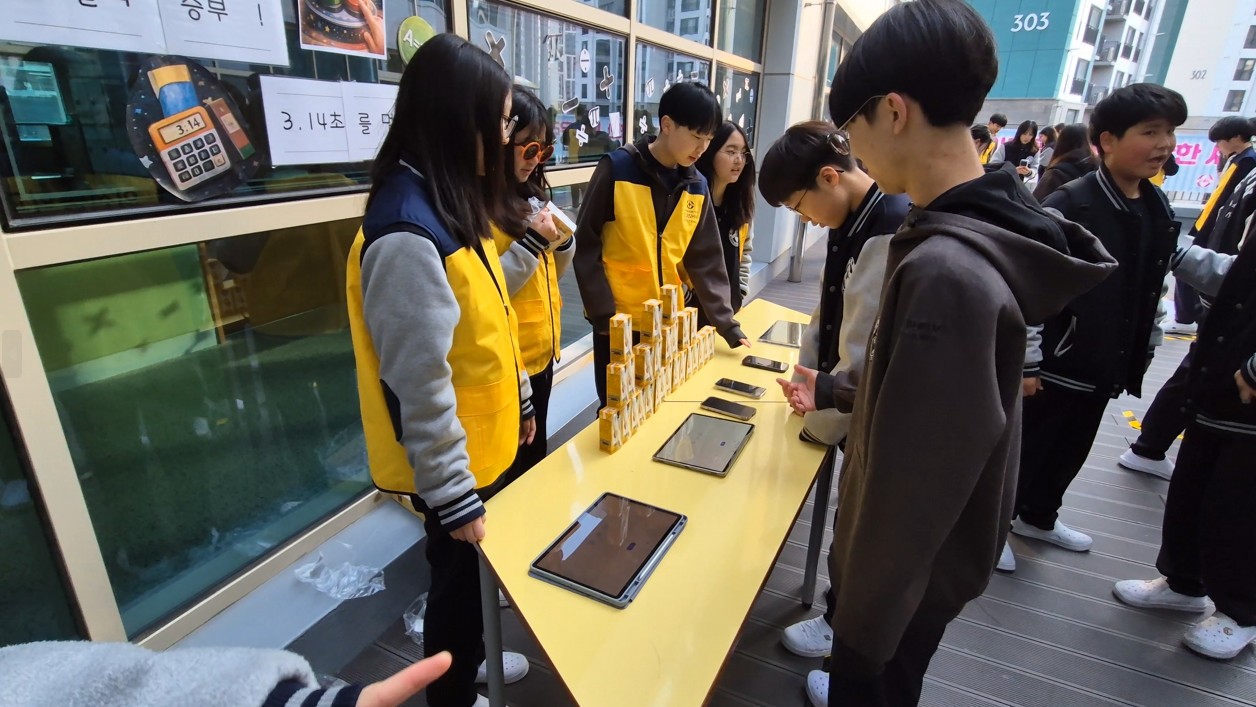 세계 수학의날(3월14일)을 맞아 의신중학교 수학동아리 학생들의 주도로 파이데이(π Day)라는 이름으로 원주율을 쉽고 재미있게 이해할 수 있는 체험 행사가 진행되었습니다.