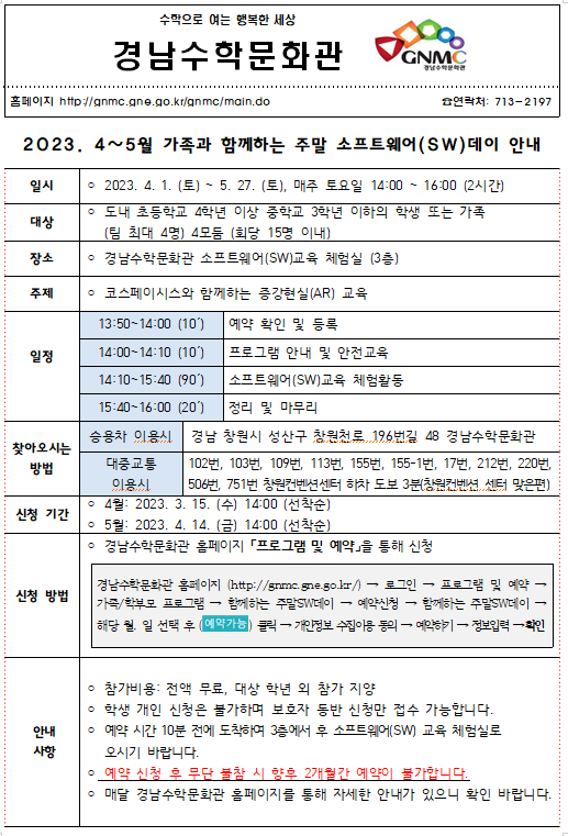 가족과 함께하는 주말 수학데이 안내(경남수학문화관)