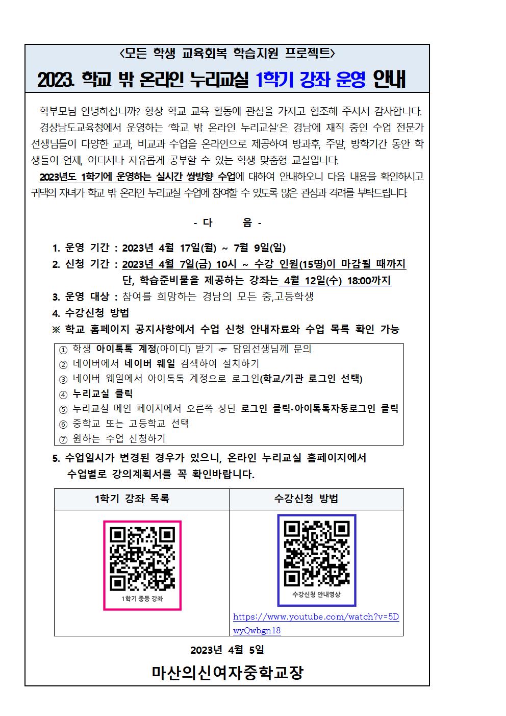 2023. 학교밖 누리교실 안내