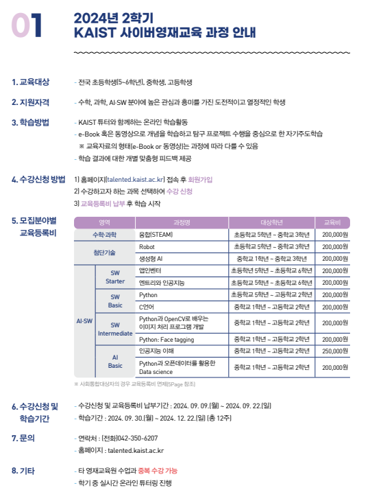 KAIST 사이버영재교육 과정 안내