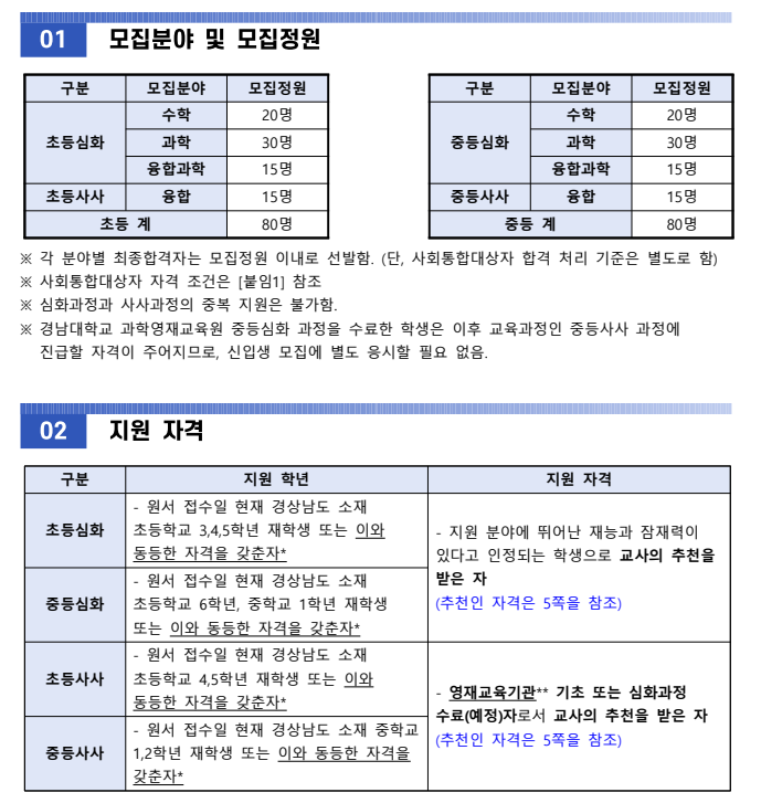 경남대학교 영재교육원 선발요강